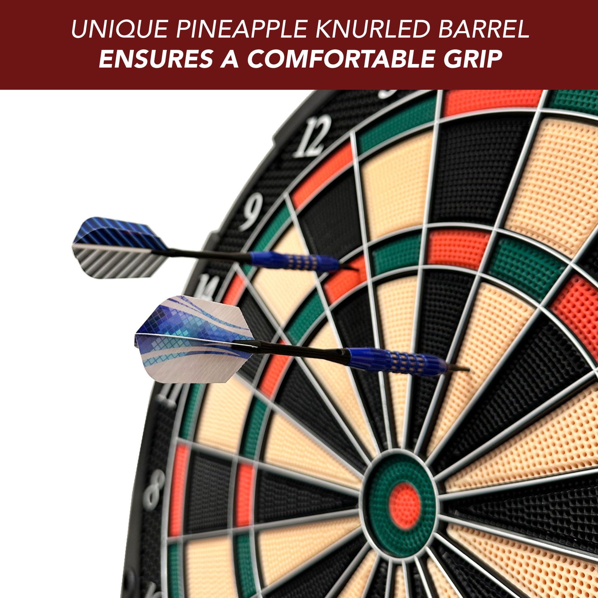 - CONSISTENCY AND STABILITY - Six aluminum shafts feature locking holes to stabilize the dart and reduce the need to retighten during a game. Six stylish flights increase speed for a consistent throw every time.